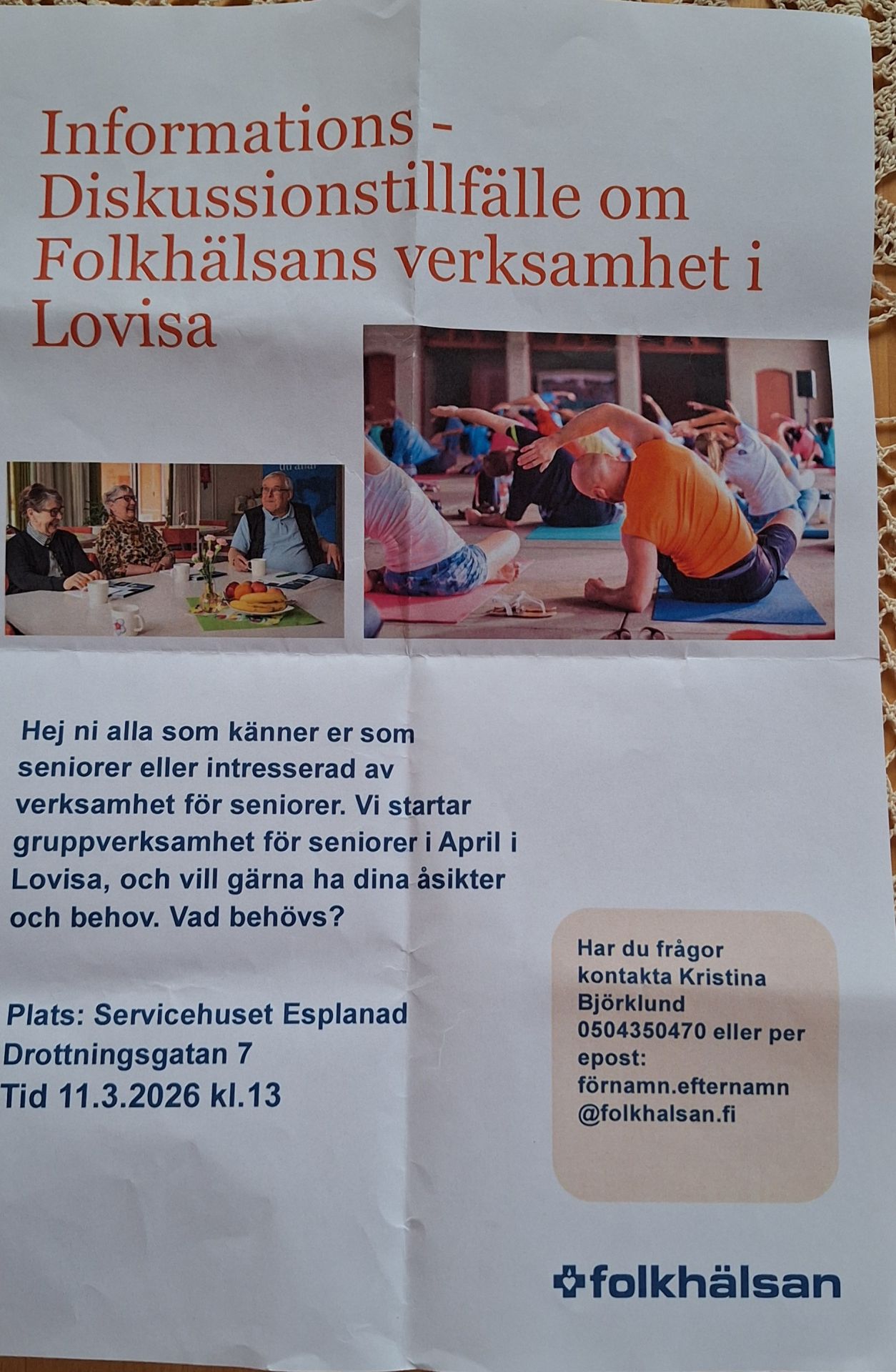 FOLKHÄLSAN I LOVISA 11.3.KL 13:00, I ESPLANAD.