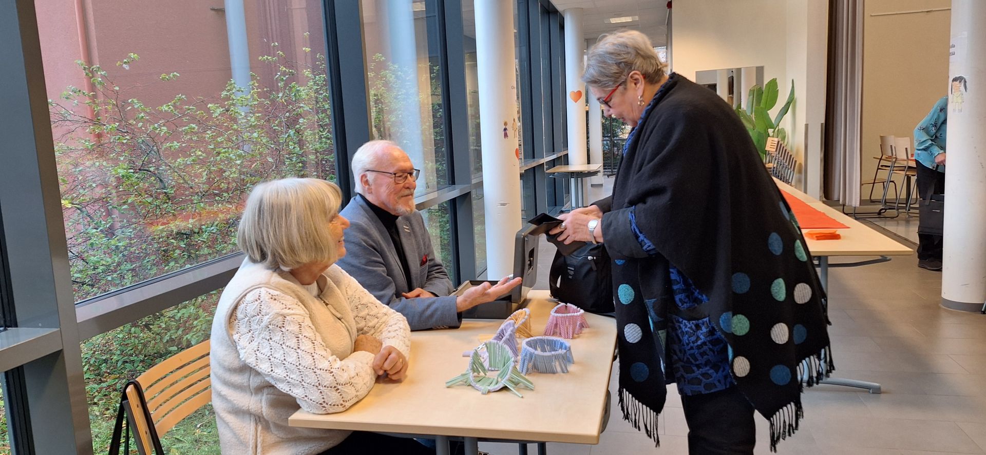 Pia Hyden,Linnéa Reinholm och Minka Nieminen från Nordea som bjöd på födelsedagkaffe