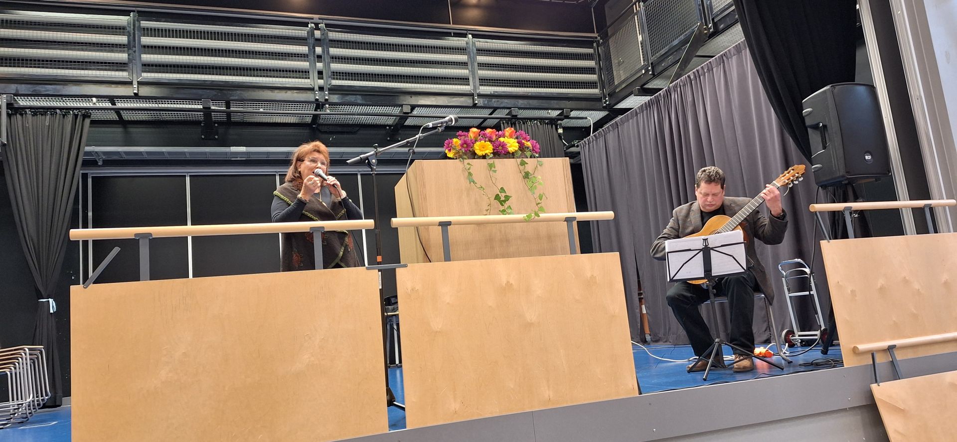 Marjut Ståhls och Sampo Sarsila underhåller.