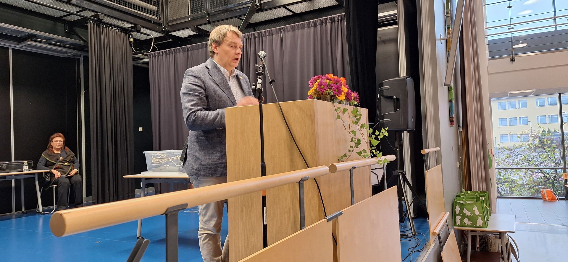 Ove Grundström på höstfesten. Kåseriet handlade om Algoth Niska.