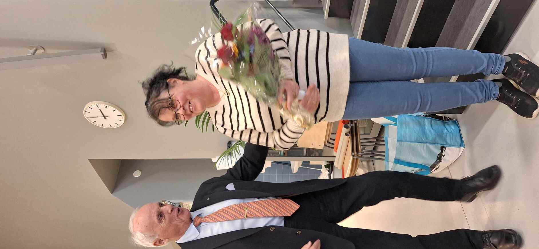 Ritva Sthåls tackas med en ros av Ordförande Håkan Karlsson