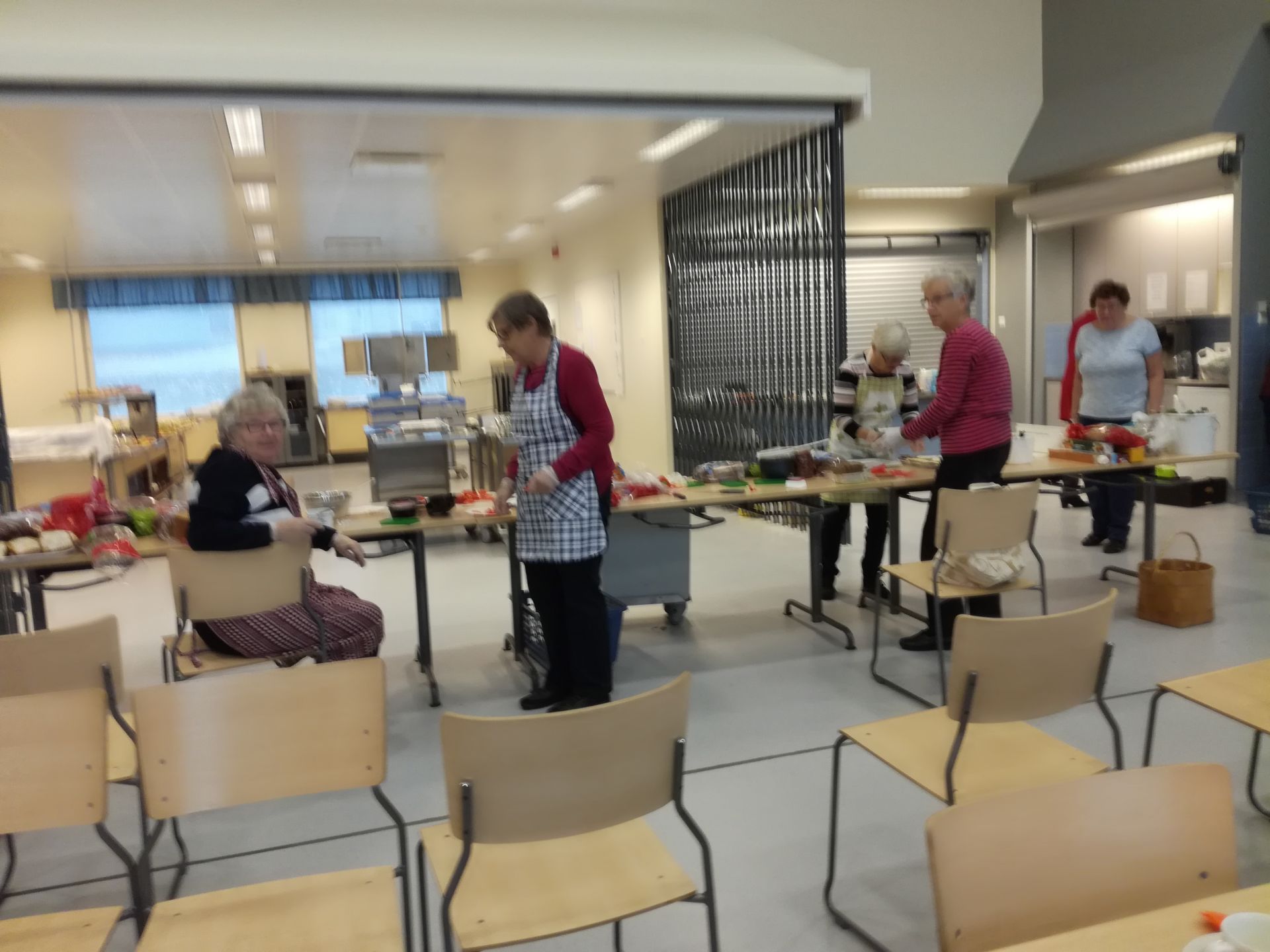 Det är dags för höstfest. Det är ju många förberedelser som ska göras före festen. Klockan 9:00 på lördag morgon samlas festkommiten och frivilliga bakom dörren i Harjurinne skola. Vi bär in många kassar med bröd, lax, sallad och andra tillbehör, och lotterivinster. Alla börjar jobba. Det lagas smörgåsar, borden dukas, blommor på borden, lotterivinster i kassar. Alla vet nästan vad som skall göras. Om inte frågas Benita. Allt är färdigt efter 2 timmar. Ännu skall kaffet kokas, så tillbaka kl 12. Festkommiten skall få ett stort tack. Likaså dom frivilliga. Mera om festen nästa vecka.