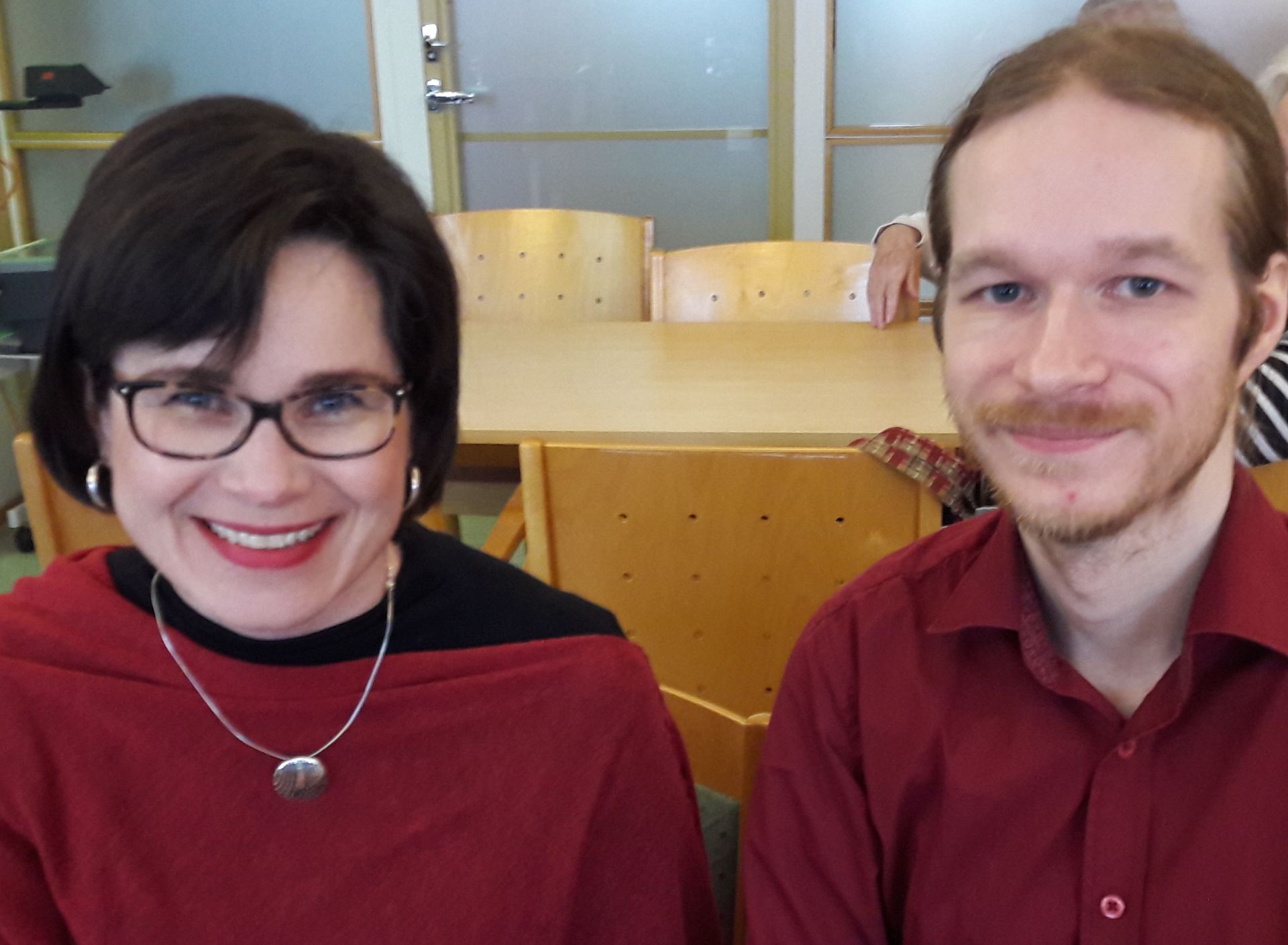 Direktören för bildnings- och välfärdscentralen Kirsi Kinnunen och bibliotekschef Tapani Häkkinen