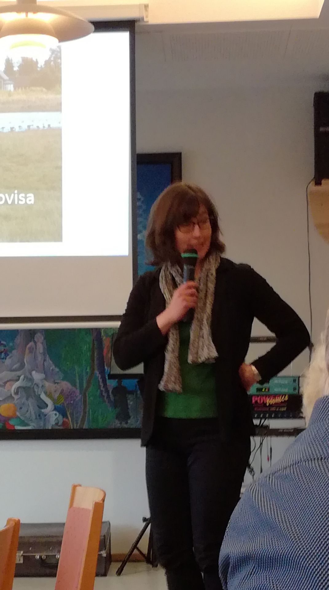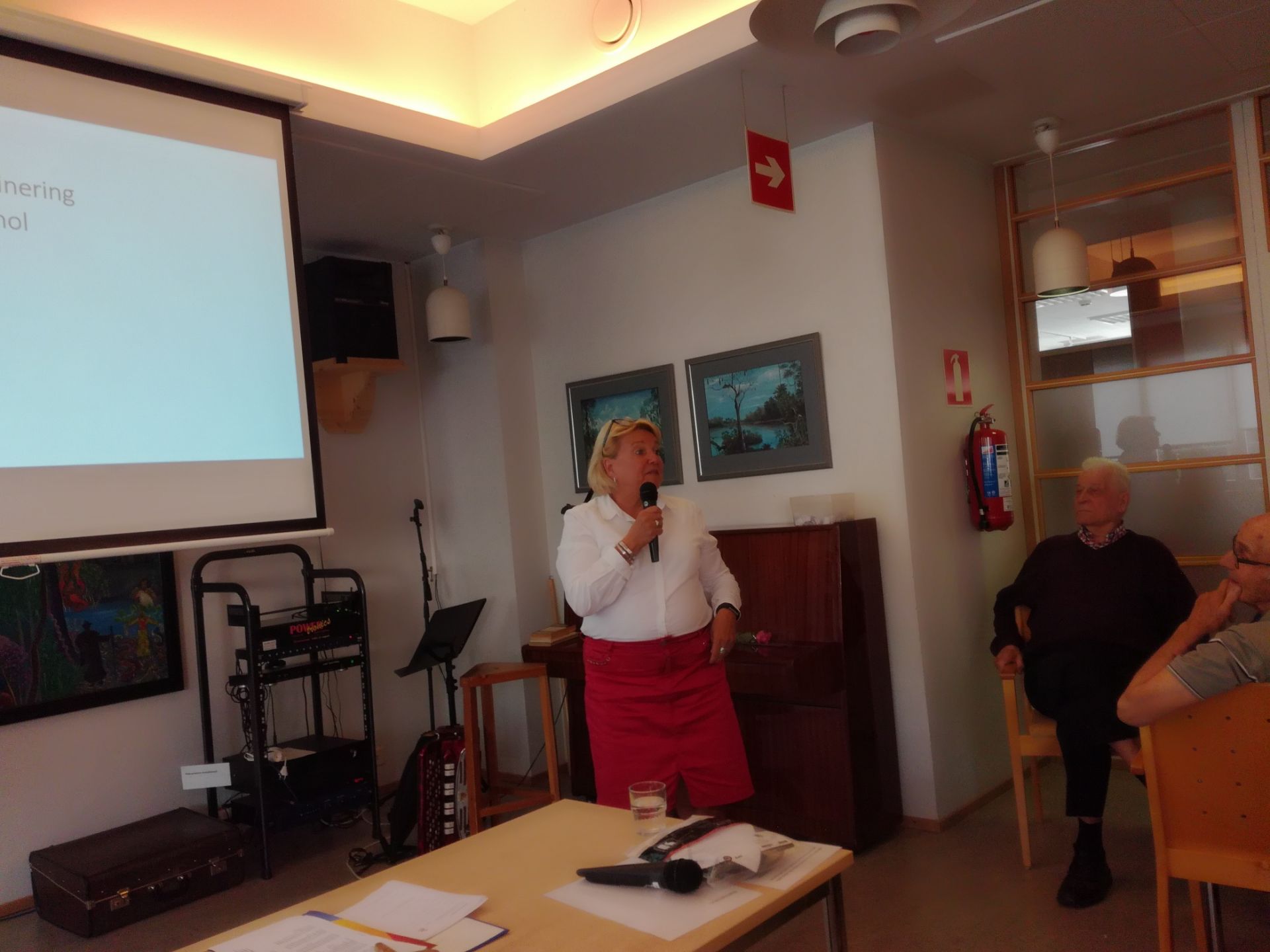 Viceordförande Christian presenterade verksamhetskoordinator Inger Holmberg från Finlands svenska pensionärsförbund.