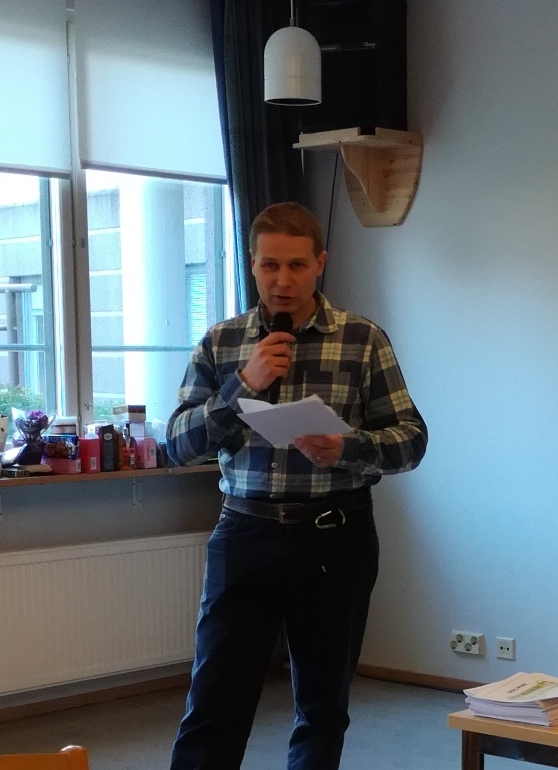 Ordförande Håkan Karlsson öppnade mötet och hälsade alla, speciellt direktören för bildnings- och välfärdscentralen Kirsi Kinnunen och bibliotekschef Tapani Häkkinen välkomna.
