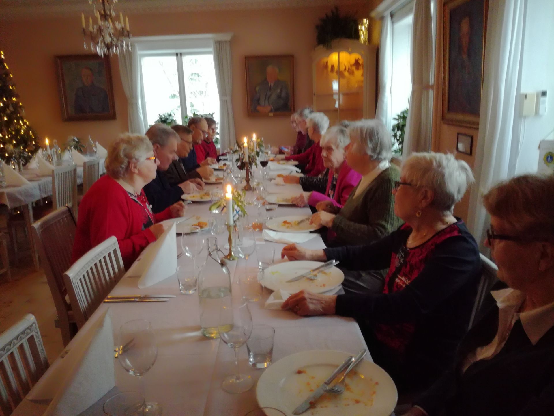 Degerby Gille, där samlades 14 av vänstugans vänner. Vi åt julmat med skinka och lådor, och sallader och lite fisk, där fanns rökt mört och gravad lax. Några vågade nog smaka av mörten och de tyckte den var god. Diskutering om juletid och julmat. en trevlig liten stund tillsammans. De flesta hade ännu många julfester och andra fester att gå till före julen. Vi får önska alla trevlig juletid.