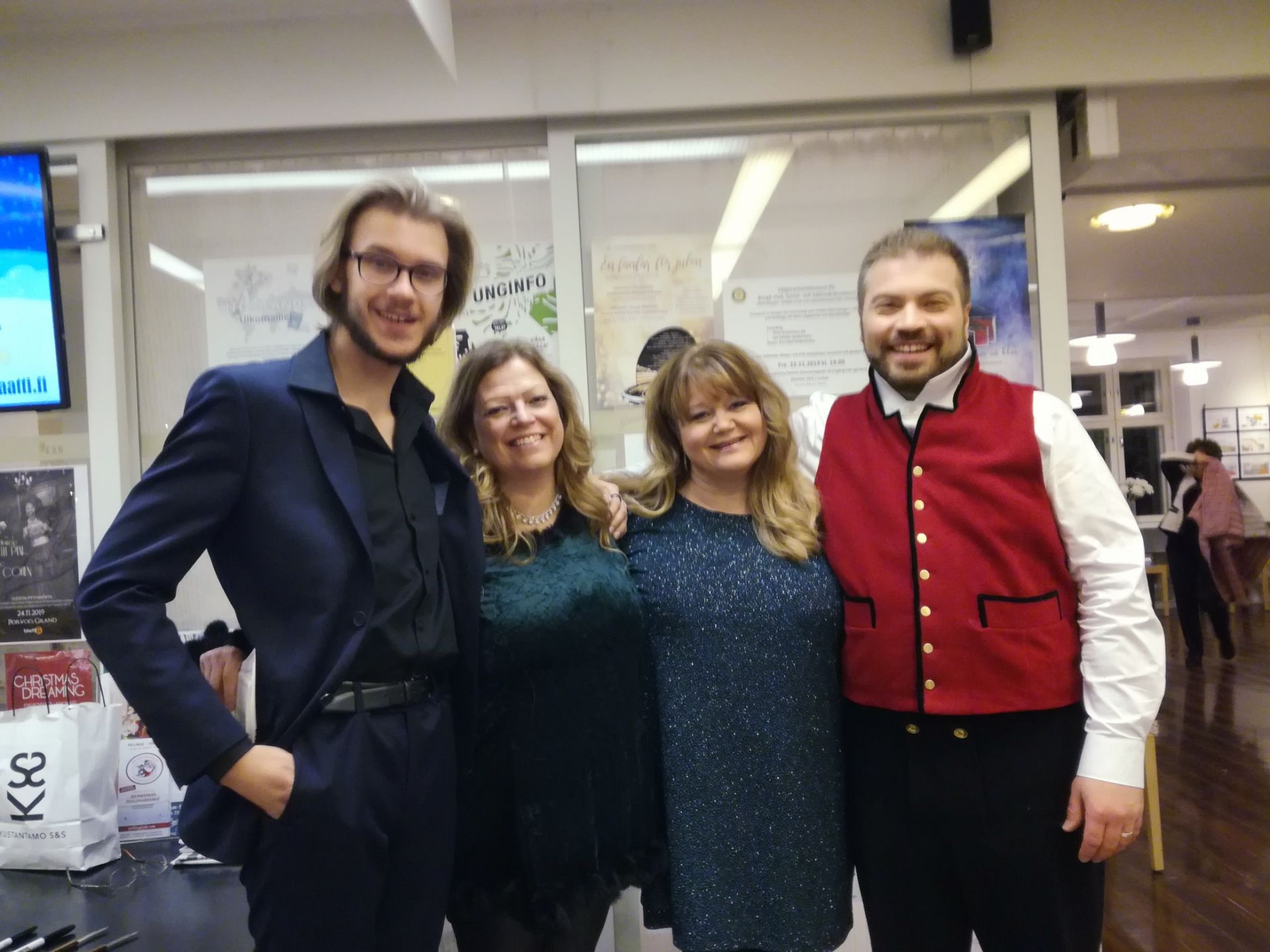 STORA JULKONSERTEN I BORGÅ GRANDÅrets stora julkonsert i Borgå Grand var fullbokad igen. Lovisanejdens svenska pensionärer åkte med Tidstrands fullsatta buss till julkonserten. 54 personer, mera som det ryms inte i bussen. Klockan 19:00 började kvällen med Kristoffer Streng, kantor från Vörå församling, han sjöng Giv mig ej guld ej glans med en röst som just behövs till julsånger. Basbaryton, flytande, vacker, med styrka och det såg ut som han inte behövde göra något, han bara sjöng. Fint att lyssna på. Han sjöng på finska Tulkoon Joulu sen Stilla Natt. Det blir en fin julkonsert. Susann Sonntag och Helene Nyberg sjöng på svenska och engelska, och förstås sjöng Helene Sparven på finska som alltid är med. Nu hade Thomas tänkt lämna bort den men ändrade sig så Helene fick sjunga den. Philip Järvenpää med sin mångsidiga röst sjöng sina Elvis låtar och fick starka applåder, men han kunde nog sjunga några julsånger på svenska, det skulle vi vilja höra. Thomas Enroth spelade som om han var inne i musiken själv, ja det lever han ju med. Vi från Lovisa åkte hem belåtna, vi har upplevt en fin julkonsert igen. Nu väntar vi på vår egen julfest och vår sångkör med julsånger.