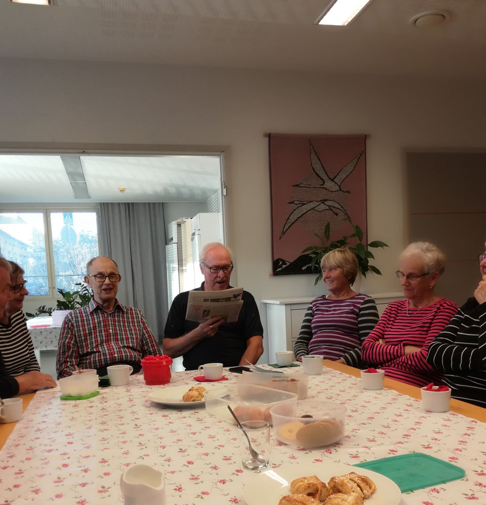 Torsdagens vänstuga med 18 personer gick undan med skratt och prat. Gott kaffe med runda munkar och pepparkakor smakade alla. Nu pratades det om trattkantareller, vem går till skogen och vem inte, gamla minnen, tex. när barnen plockade blåbär och ämbaren blev fort fulla, nåjaa kanske det var lite mosse på botten, men det hör ju till. Posten, som har blivit kvällspost åt många skapar nog olika pratstunder. Nya Östis anlände till servicehuset, och Nils-Erik Frejborg läste Kåseri av Lill-Pontus åt oss, det var roligt. Ja, så gick den eftermiddagen.