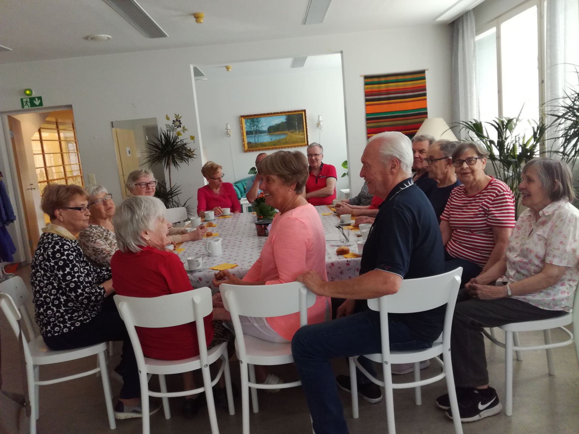 Till vårens sista vänstuga samlades 17 glada pensionärer. Gott kaffe med bulle, livligt prat. Sen fick Mona en fin ide, hon gav alla en uppgift, det gäller att hitta den bästa /roligaste dagen eller händelsen under sommaren, och sen berätta på hösten vad som hänt, det kan bli intressant.