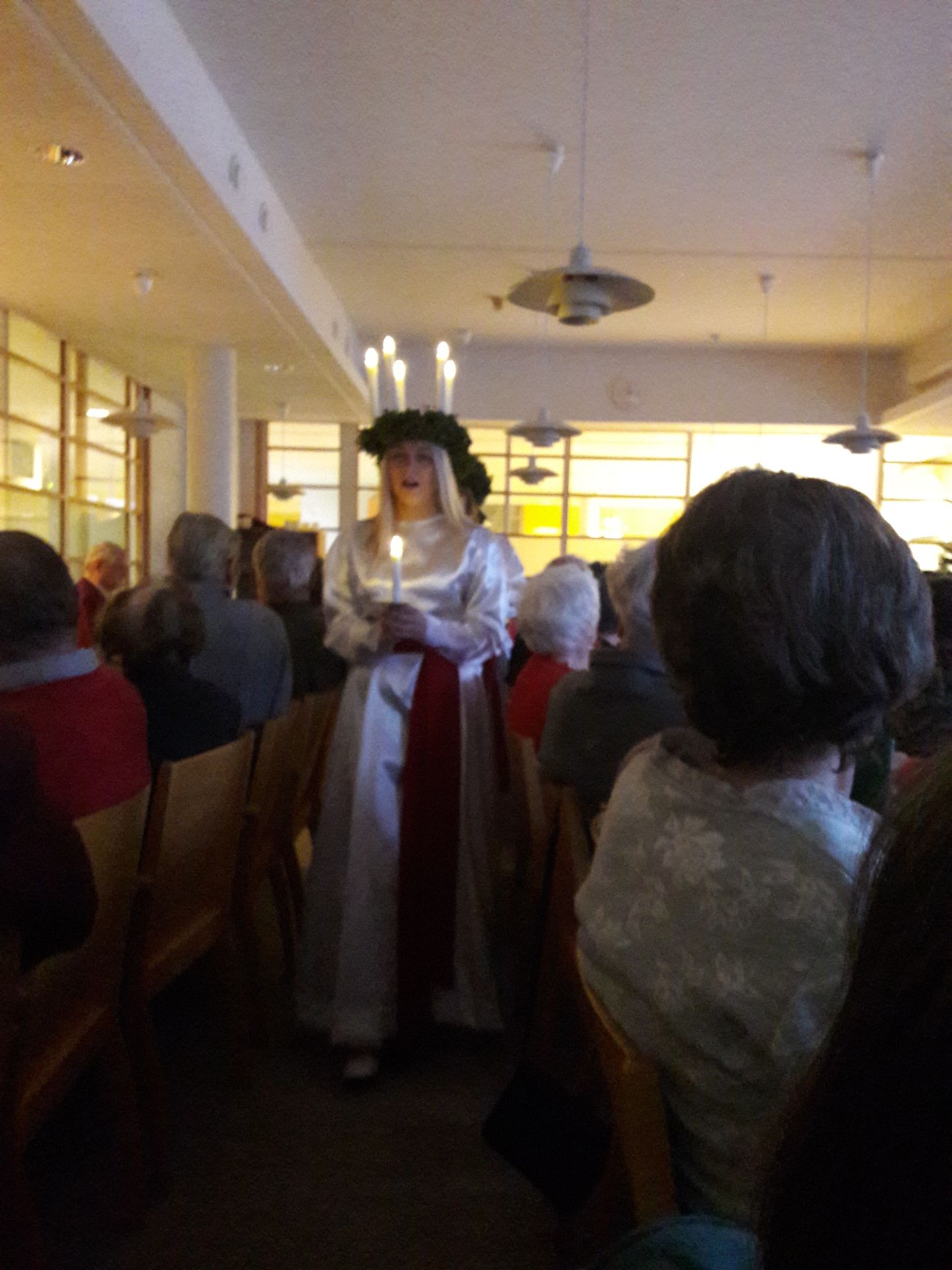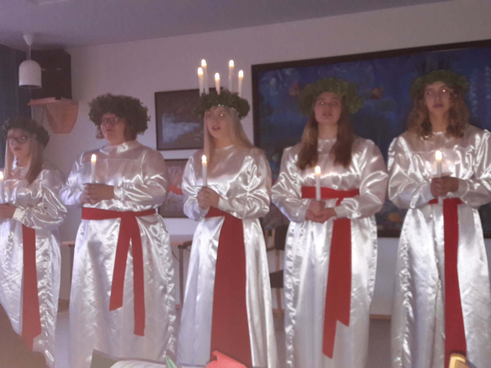 Julfesten firades med allsång, Nya Östis Lucia med följe, gröt och kaffe och jultårta och såklart julgubben!