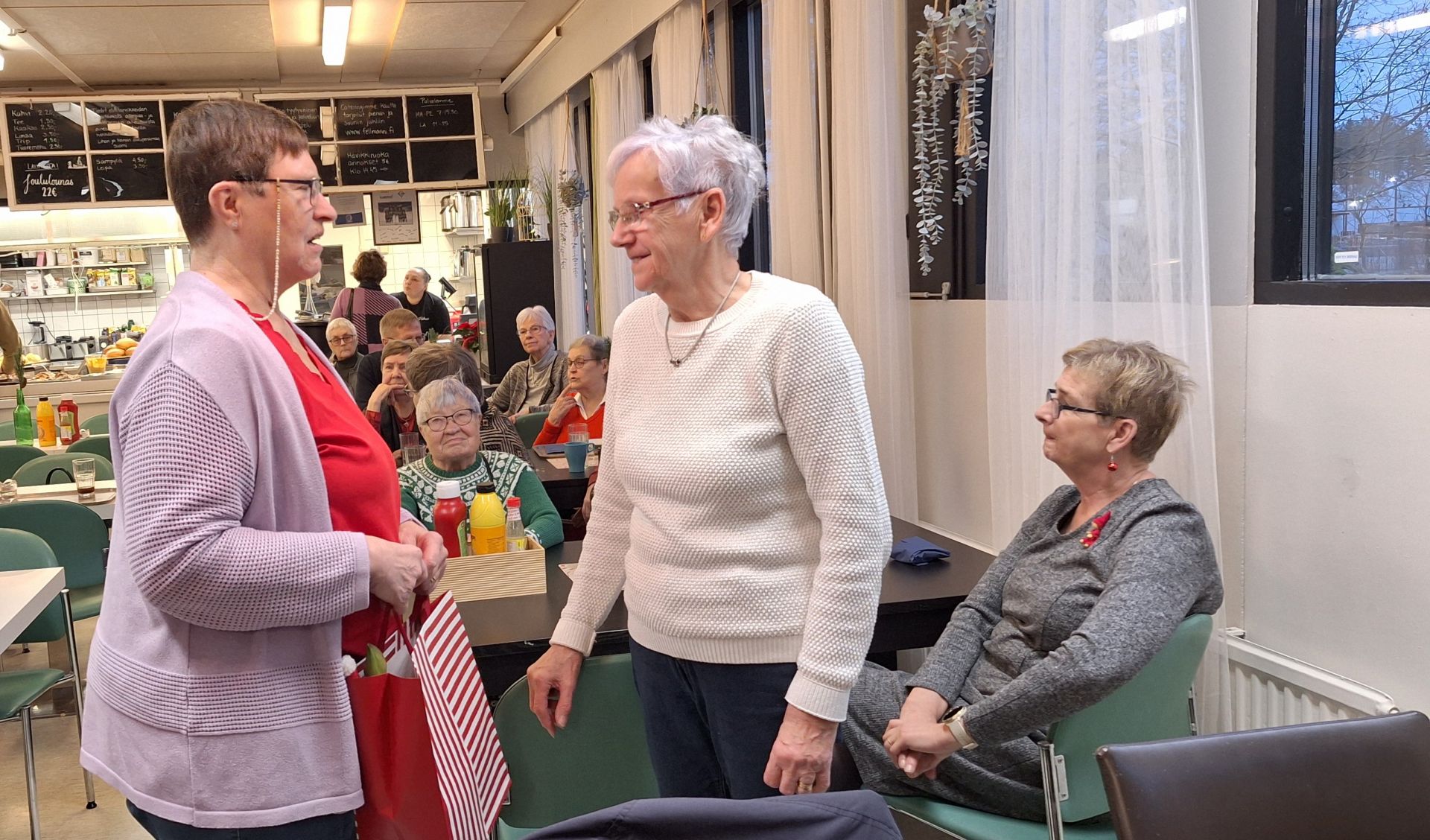 Den 17 december 2025 samlades 18 personer från Vänstugans Vänner för en trevlig jullunch på restaurang Holmari. Stämningen var varm, med mycket prat och skratt runt borden. Alla uppskattade den goda maten och det härliga sällskapet, vilket gjorde julfirandet minnesvärt detta år. För några var det första julmaten för året, för andra kanske tredje eller fjärde gången. Maten smakade alla. Efter kaffet kom Gunilla fram till Marita med en julblomma och hon blev tackad för årets kaffekokande och alla bullar hon bakat. Tack, Marita.