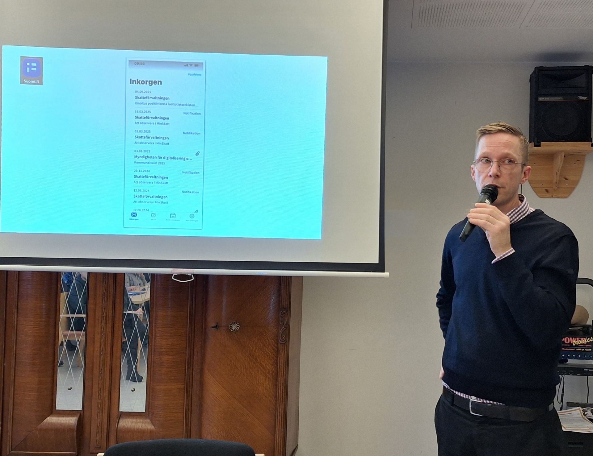 Robert fick många frågor om detta, tex om man om man inte loggat in i Kanta eller andra inloggningar får man fortsättningsvist pappers post. Har man Oma Posti kan en del post gå dit en del i Suomi.fi Sen får man e-post när man fått meddelande till postlådan som då är inne i Suomi.fi. Logga in och läs. Robert tackades med en ros och en kram av nya sekreteraren Kerstin Stenstrand. Mera info senare om det behövs.