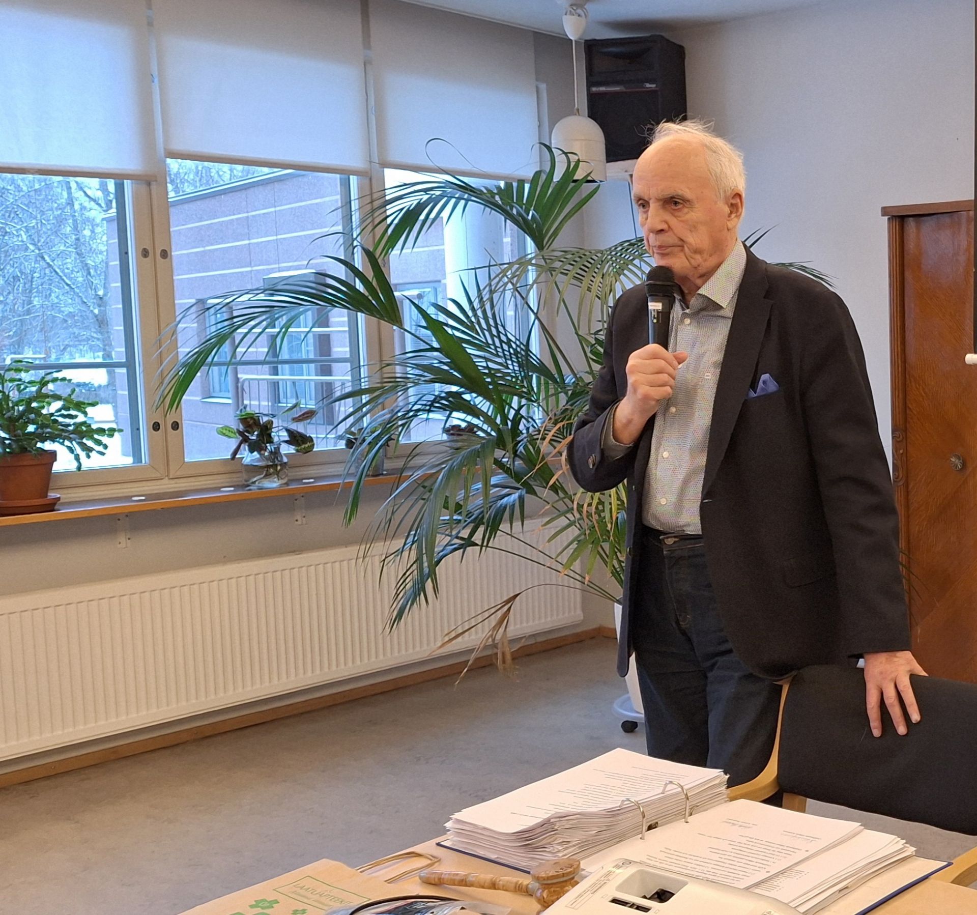 Ordförande Håkan Karlsson hälsade Joakim Holmström, direktör för närings- och infrastrukturcentralen i Lovisa välkommen.