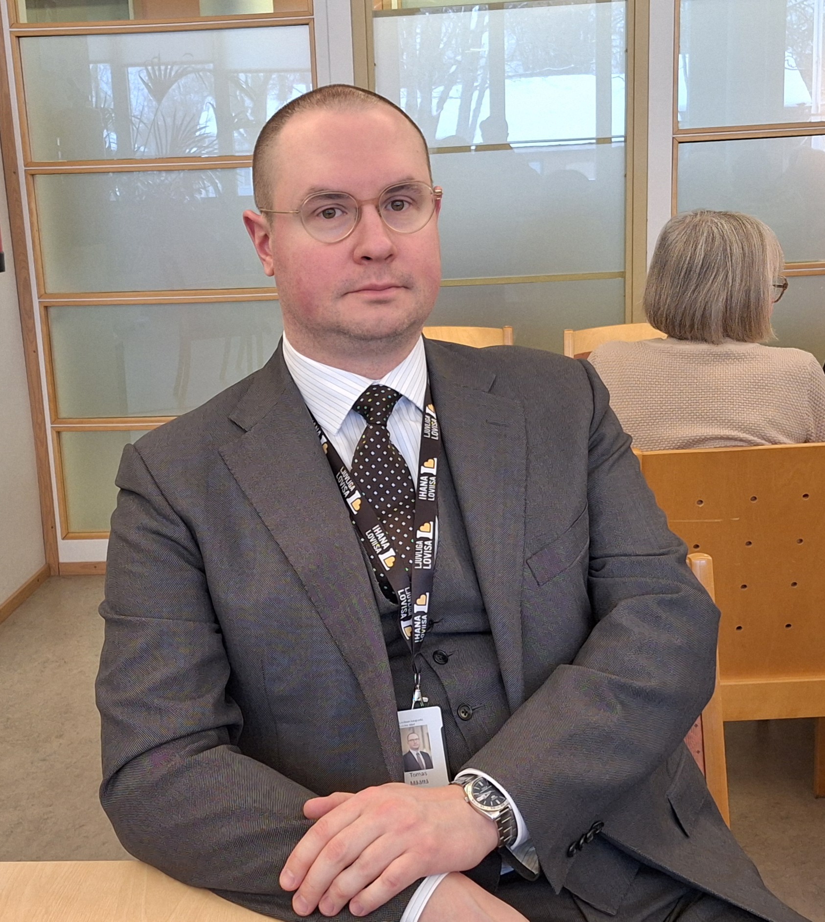 Tomas Määttä Förvaltningsdirektör, 39 år, född och uppvuxen i Lovisa, men bor nu i Borgå med sambo, han är Vicehäradshövding, juristmagister, tidigare arbetsplatser Tingsnotarie i Kymmenedalens tingsrätt, förvaltningsjurist, HUS-sammanslutningen, jurist, riksarkivet, här är bara några av tjänsterna, han är också ordförande för både Veterantraditionsföreningen och Reservofficersklubb, han efterlyste också om nya medlemmar till först nämnda.